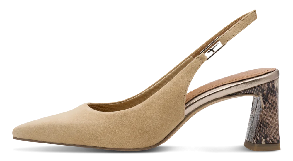Pantofii decupați la spate sunt tot mai prezenți în tendințele actuale, datorită aspectului lor rafinat și aerului ușor pe care îl aduc unei ținute. Tamaris a imbunatatit acest model prin adăugarea unor tocuri geometrice stabile și a unor vârfuri ușor ascuțite, care conferă o notă de autoritate și grație. Sunt alegerea strategică pentru evenimente de zi sau pentru o ținută de birou care necesită un plus de prospețime.