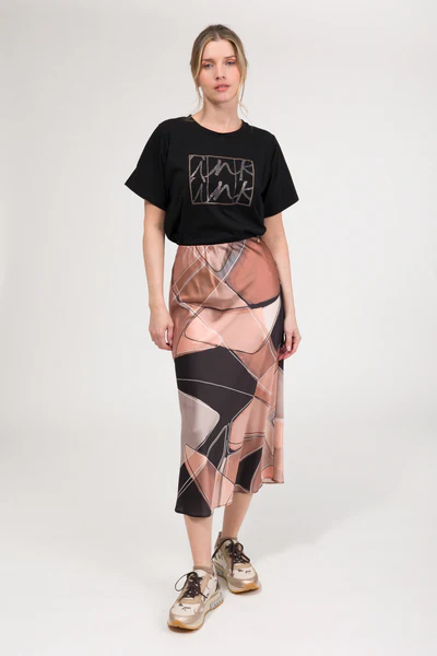 Această fustă cu imprimeu în nuanțe neutre și naturale este inspirație pură. Designul său fluid și feminin o transformă într-un element de bază al garderobei: ușor de stilizat, confortabilă de purtat și cu acea notă unică ce o face specială. Perfectă pentru vremea de tranziție, o poți purta cu tricouri simple, pulovere, cămăși sau jachete. Adaugă o pereche de cizme sau pantofi sport și vei avea un look plin de suflet. Când stilul întâlnește versatilitatea, se nasc piese ca aceasta.